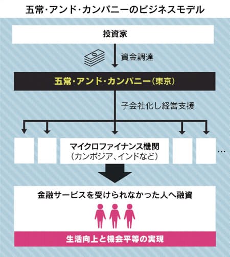 アジア各国のマイクロファイナンス機関に出資して子会社化し、それぞれの企業の経営力を強化する。業界最低水準の金利を目指し、より安く使いやすいサービスを途上国の人々に届ける。この5年間で顧客数は50万人、融資残高は300億円を超すまで成長した。17年度以降は連結黒字になっている。